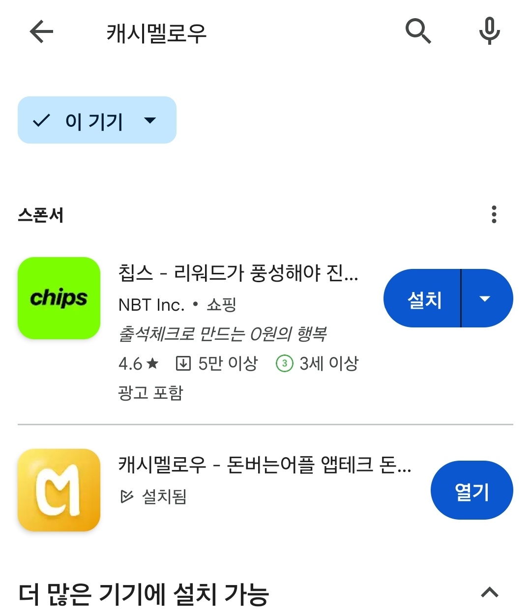 플레이 스토어에서 '캐시멜로우'를 검색해서 다운로드 받으면 된다.