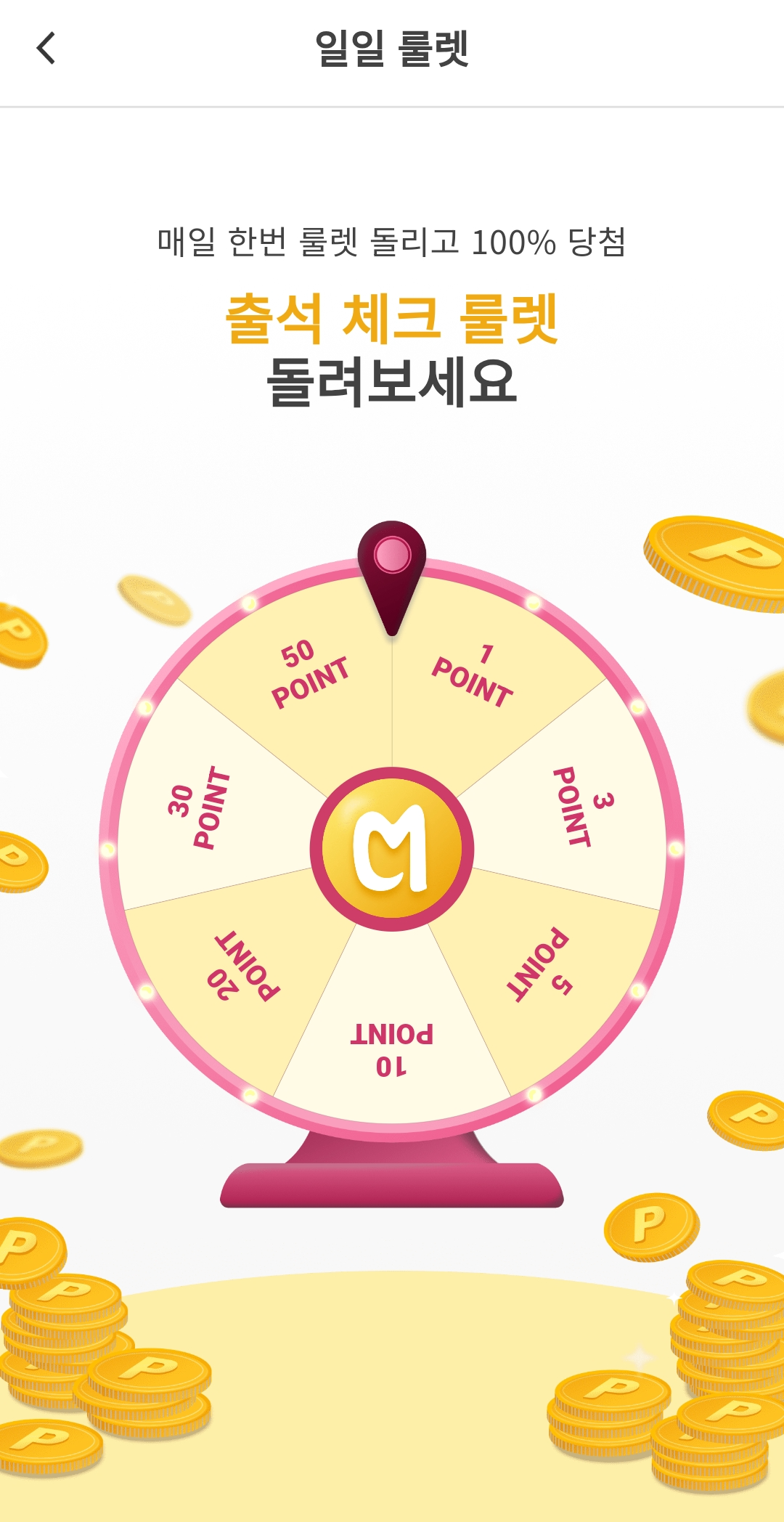일일 출석 룰렛에서 1P에서 50P 사이의 포인트를 얻을 수 있다.