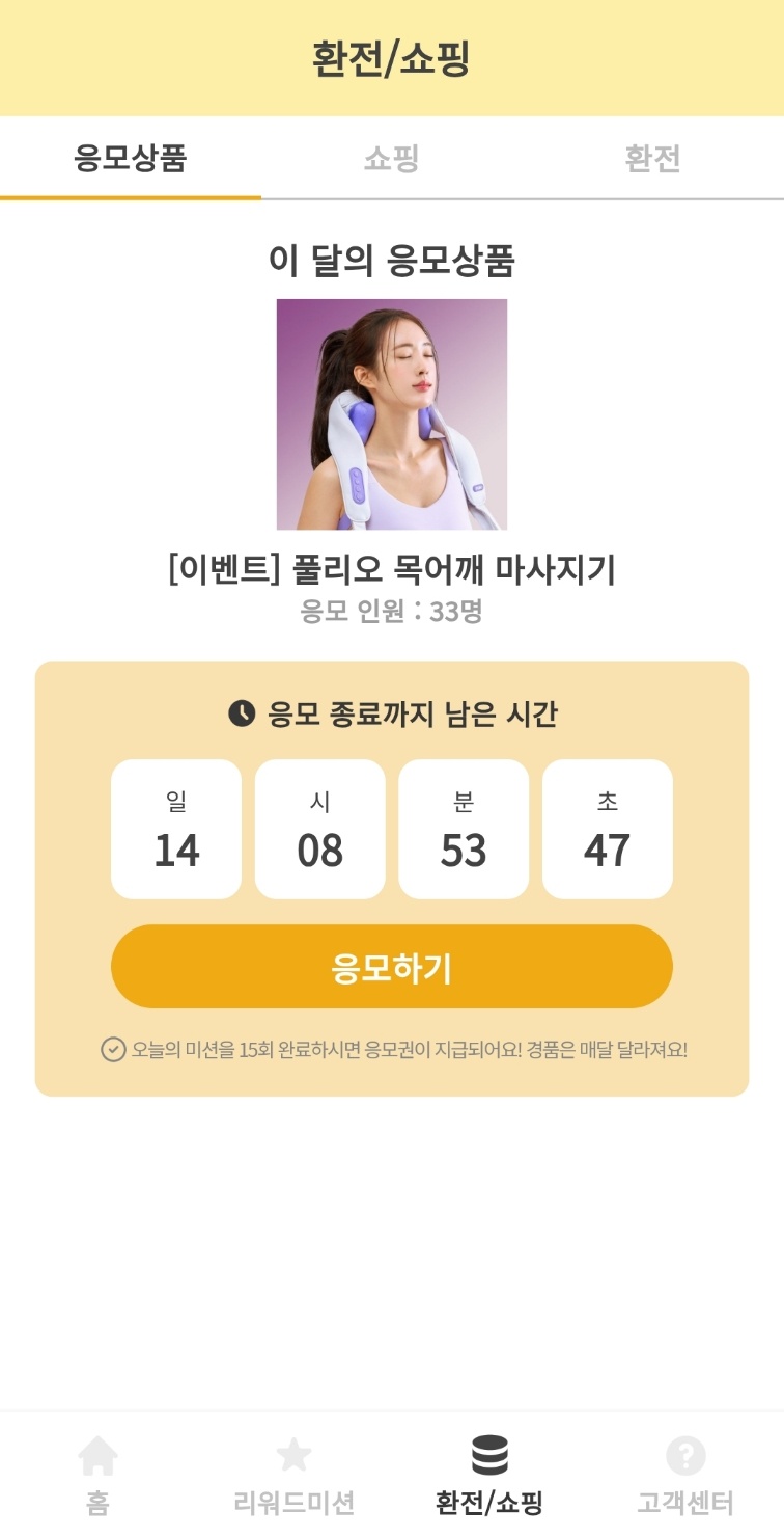 오늘의 미션을 눌러 정답 공유를 해 응모권을 받으면 매월 새로운 경품에 응모도 할 수 있다.